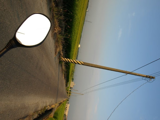 從雲層裡直射出的光線打在柏油路上是金色的,