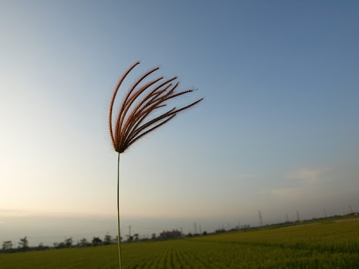 再加上一點點的微風吹拂,稻田裡的稻穗輕擺,