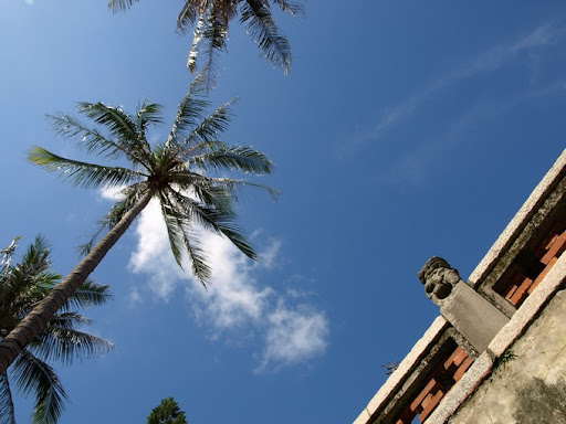 周圍種滿了夏季風情的棕梠樹,跟古建築好像有那麼點不搭...光看照片還以為來到墾丁!